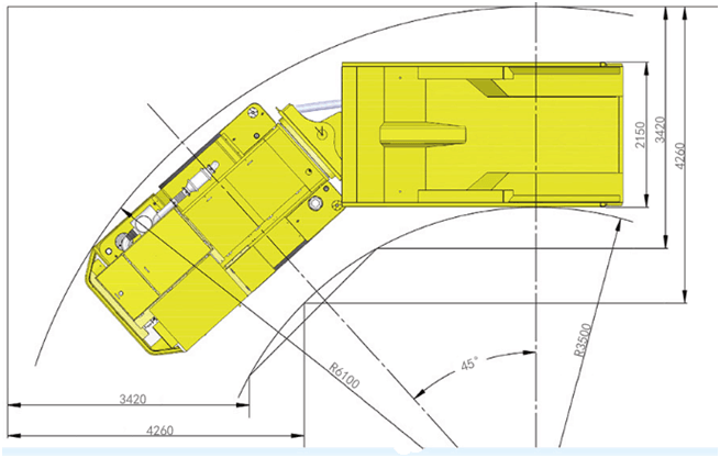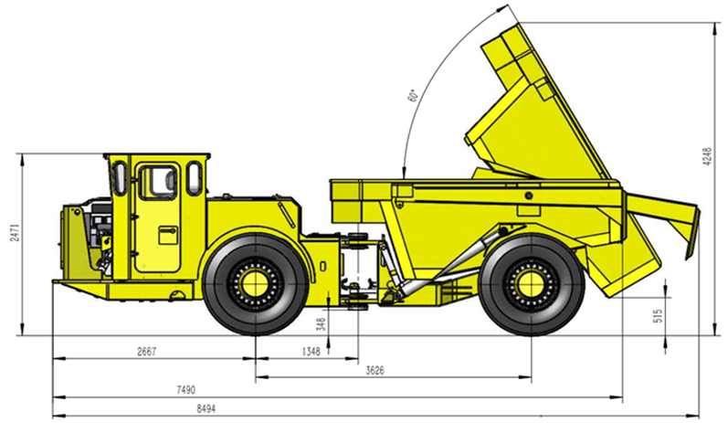 UK-15 is mainly used in underground mines with a loading capacity of 15 tons. The frames are articulated in the center with 45° steering angle, the turning radius is small. (Remote control available)
