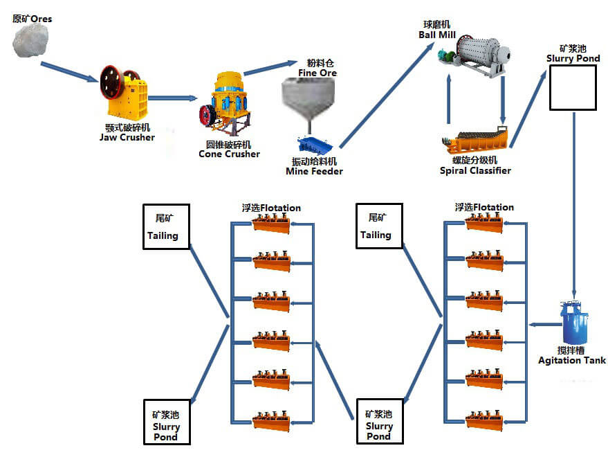 Flotation is often used for the separation of barite ore with very fine particle size and its gravity tailings. According to different adsorption modes, barite was flotation by using anionic collectors such as aliphatic acid alkyl sulfate, alkyl sulfonate or cationic amine collectors.
